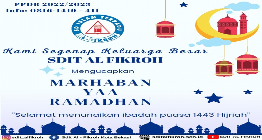 Kami segenap keluarga besar SDIT Al Fikroh Mengucapkan Marhaban Yaa Romadhon dan Selamat Berpuasa, semoga Amalan-amalan kita bulan suci ini diterima dan mendapatkan pahala yang berlipat ganda.